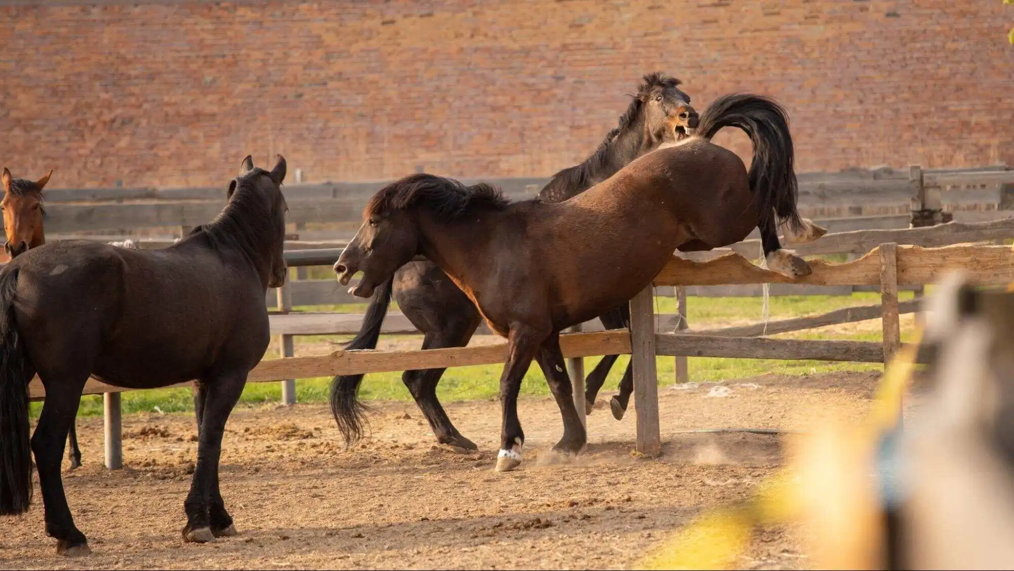 ⛔️ Pferde sind Herdentiere und dringend darauf angewiesen, mit Artgenossen zusammenzuleben. Daher ist es auch vom Gesetz her verboten, Pferde einzeln zu halten. Damit das Zusammenleben in der Herde gut funktioniert, entwickelt sich eine Rangordnung unter den Tieren. Das bedeutet, dass es meist einen Anführer gibt, der z.B. immer zuerst trinken oder fressen darf. Die anderen Herdenmitglieder ordnen sich unter, wobei es immer rangniedrige und ranghohe Pferde gibt. Die Rangordnung wird vor allem dadurch festgelegt, dass ein Pferd ein anderes Pferd von einer Stelle (z.B. Futter, Trinken) verjagen darf. Stehen Sie mit Ihrem Kind am Koppelzaun und rascheln mit der Möhren-Tüte, locken Sie höchstwahrscheinlich alle Pferde an und verursachen so eine stressige, enge Situation — einen regelrechten Kampf um’s Futter direkt vor Ihrer Nase. Es kann dabei zu bösen Verletzungen der Pferde untereinander durch Bisse oder Schläge kommen, der Zaun kann durch herumfliegende Pferdehufe beschädigt werden oder es gerät gar die Kinderhand zwischen die Fronten.