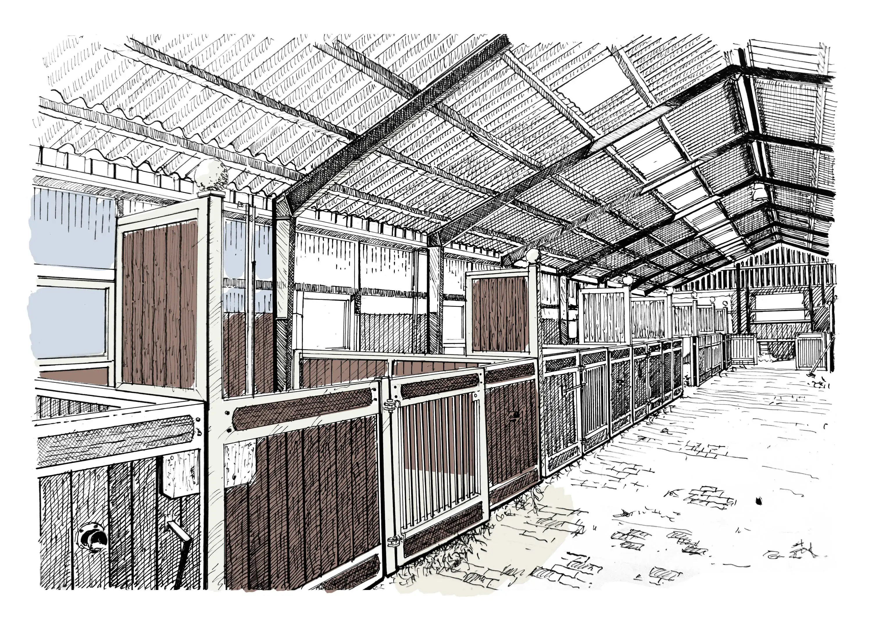 Ältere oder kranke Pferde benötigen temporäre Rückzugsmöglichkeiten, um in Ruhe fressen und schlafen zu können. Daher steht jedem Pferd eine luftige 16 qm-Box mit eigenem Fenster, einer Terrasse und gitterloser Einrahmung als Rückzugsort für ungestörtes Fressen, Schlaf und Dösen zur Verfügung. Diese wird mit zertifiziertem Waldboden eingestreut. Die Waldboden-Einstreu zeichnet sich durch ihre weiche, trockene und staubfreie Eigenschaften aus und duftet zudem noch sehr angenehm. Jede Box wird täglich gereinigt, bei Bedarf auch häufiger. Über die Terrasse gelangen die Pferde auf das als breiten Rundlauf angelegte Gemeinschaftspaddock, auf welchem die Pferde ihre Sozialkontakte pflegen und weitere Beschäftigungsmöglichkeiten (Totholzecke, Kräutergarten, Sandhaufen, Heustationen, Scheuer- und Kratzbalken) vorfinden. Im Sommer wird die Zeit auf dem Gemeinschaftspaddock durch Weidegang ergänzt oder auch ersetzt. Die großzügige Weide ist knappe 2 Kilometer vom Stall entfernt. Routinierte Offenstall-Pferde, die lieber dauerhaft in einer Herde leben möchten, können dies bei Recovery tun.